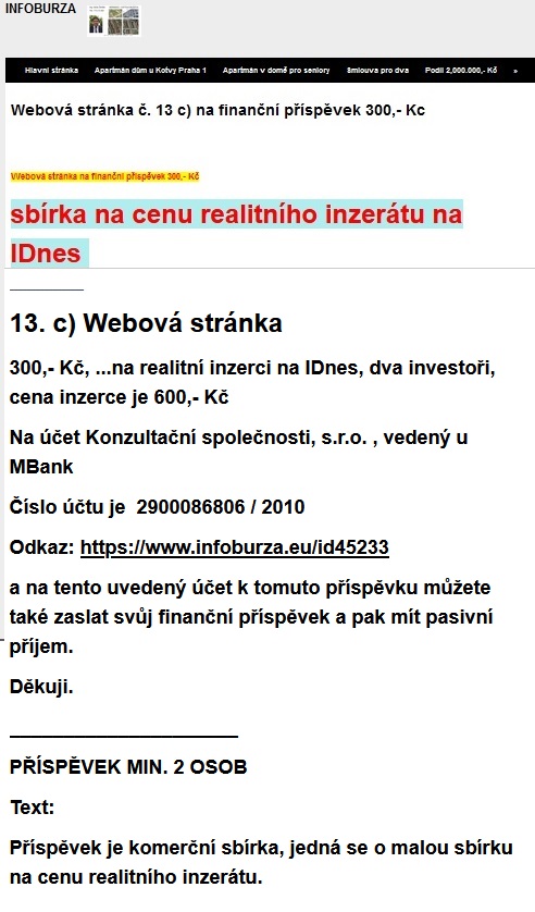 odkaz na toto video zde: https://www.youtube.com/watch?v=vQQSSFVDOjw Mluvené slovo 8.7. 2022 – k nabídce zajišťování 60,000.000,- Kč na developerský projekt na byty