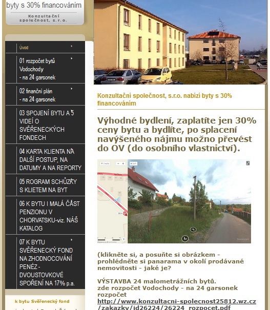 13. 24 MALÝCH BYTŮ pro mladéž - u Prahy - půdorysy, developerský rozpočet, provize, zisk, Velká kancelářská franchisa, smlouva o sdružení (dnes Svěřenecký fond), systém pro starší budouvy a nemovitosti: